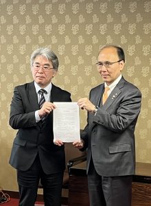 3月11日10:30平田副知事(右)に春闘要求書を提出する県労連島﨑議長